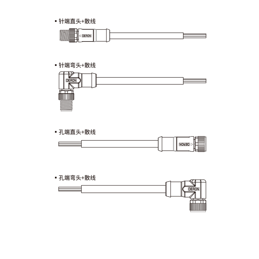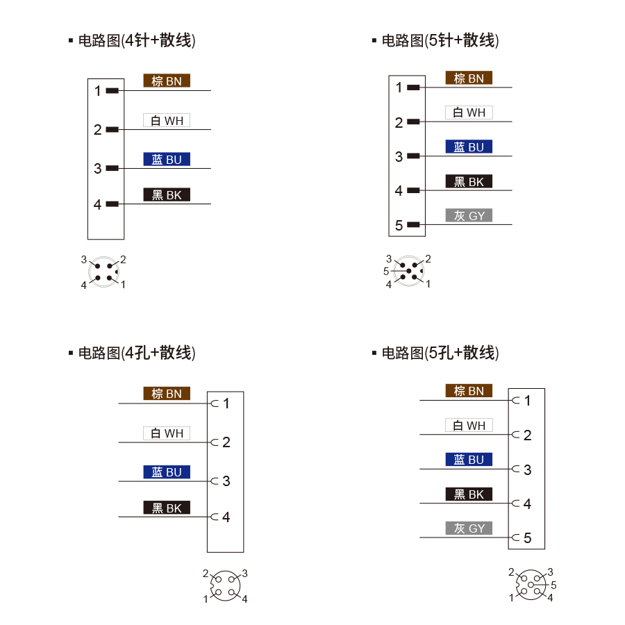 | 產(chǎn)品名稱 | M12(A-code)4針+散線 | M12(A-code)5針+散線 | M12(A-code)4孔+散線 | M12(A-code)5孔+散線 |