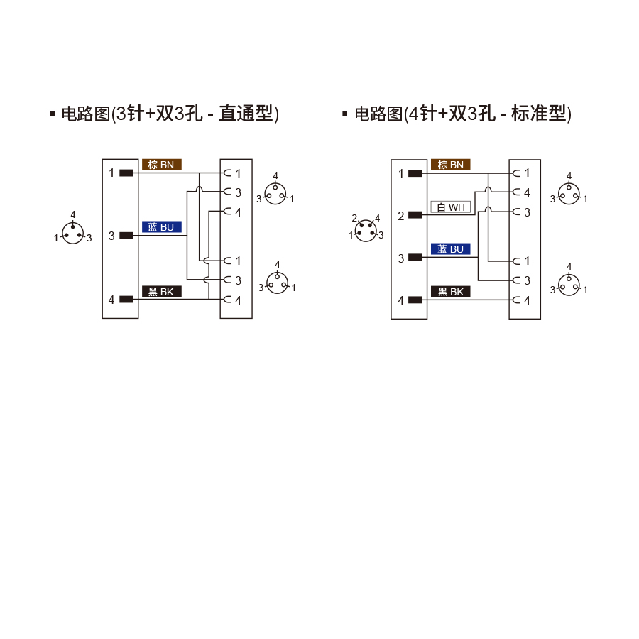 | 產(chǎn)品名稱 | M8 3針+M8 雙3孔 | M8 4針+M8 雙3孔 |